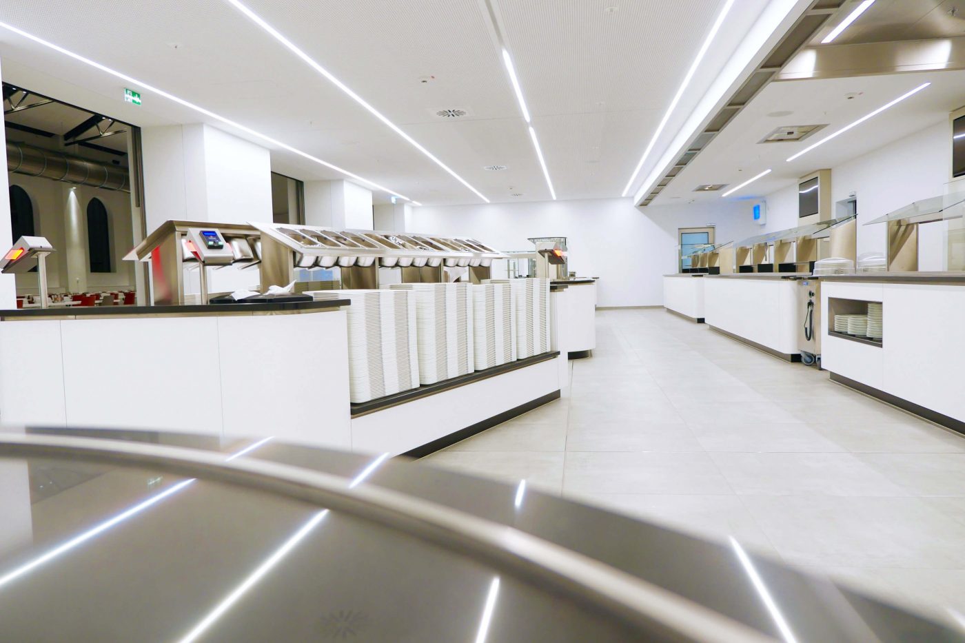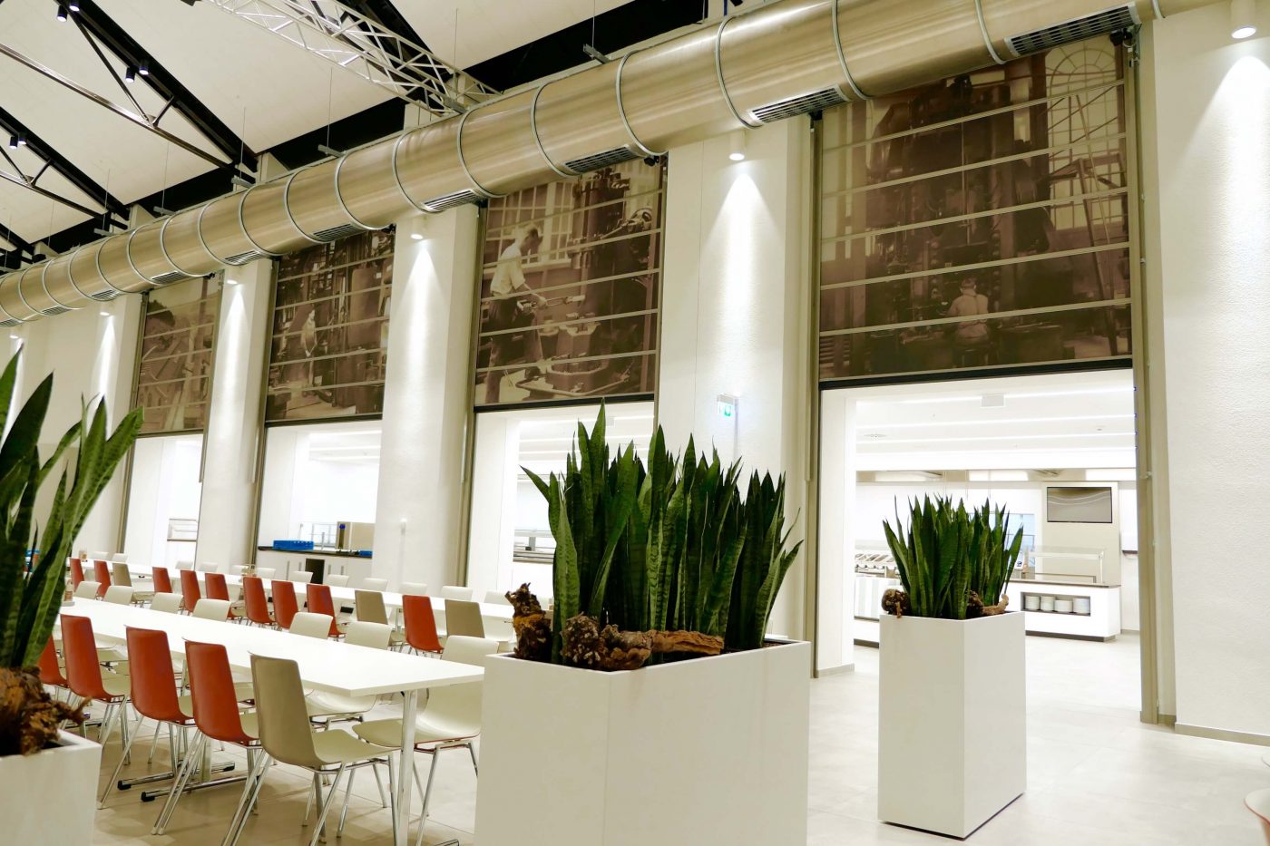 Hocheffiziente Planung, Vielfalt und hohe Flexibilität im Freeflow-Bereich. Die neue Betriebsgastronomie, Ende 2017 eröffnet, verbindet die Unternehmens-Historie mit einem modern-effizienten Weg und neuem kulinarischen Gastronomiekonzept: Ein neuer Freeflow-Bereich bietet eine deutlich erweiterte Vielfalt, auch an den fünf Aktionstheken.