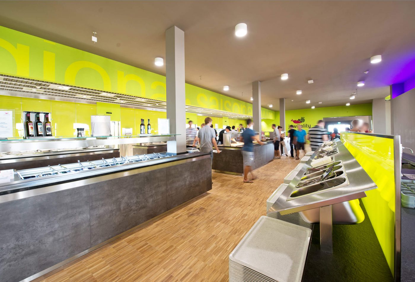 Wir wollten ein Vorzeigemodell entwickeln, das sowohl den CO2-Ausstoß als auch den Energiebedarf drastisch minimiert und damit höchst innovativ ist. Um eine neue Benchmark für zukunftsfähige Gastronomie Planung und Gemeinschaftsverpflegung zu erstellen, wurden komplett neue Prozesslösungen erdacht und mittels Energieeffizienz-Handbuch fixiert, die ganz konkret den Energiebedarf schmälern helfen. Mit aktuell über 50 Einzelmaßnahmen wurde der Bedarf an Energie insgesamt im Vergleich zu bisherigen Küchen um ein Drittel verringert werden.
