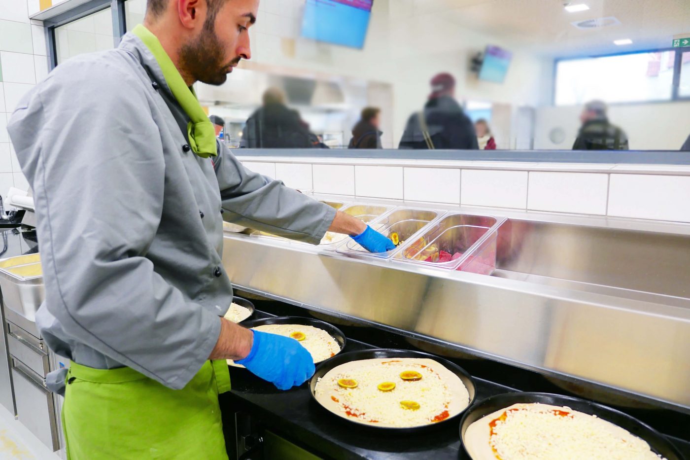 In der neuen Hochschulgastronomie in Bonn-Poppelsdorf, im Campo, ermöglichen Planung und Konzepte höchste Flexibilität. Das gilt nicht nur für die Produktions- und Regenerierküche, für die zwei Spülküchen – eine aus hygienischen Gründen gesondert für das Geschirr aus dem Außerhausgeschäft – sondern auch für die Technik im Backstage der Counter. Sie sind autark angelegt, mit Flächen und Techniken zum Kühlen, Warmhalten, Produzieren oder Finishen sowie ausgeben.