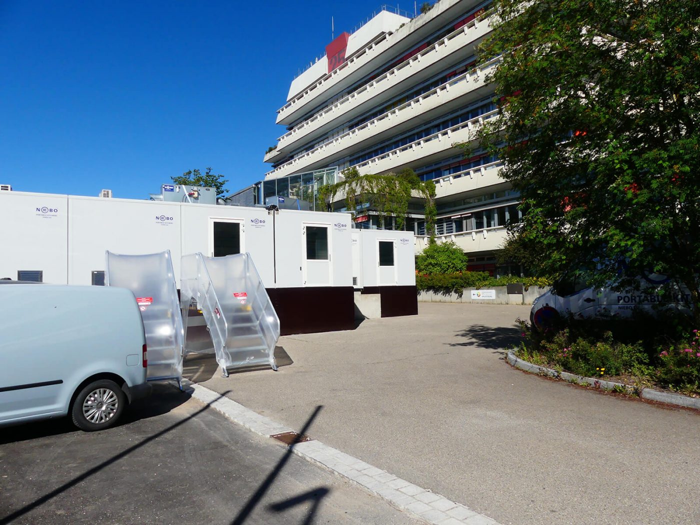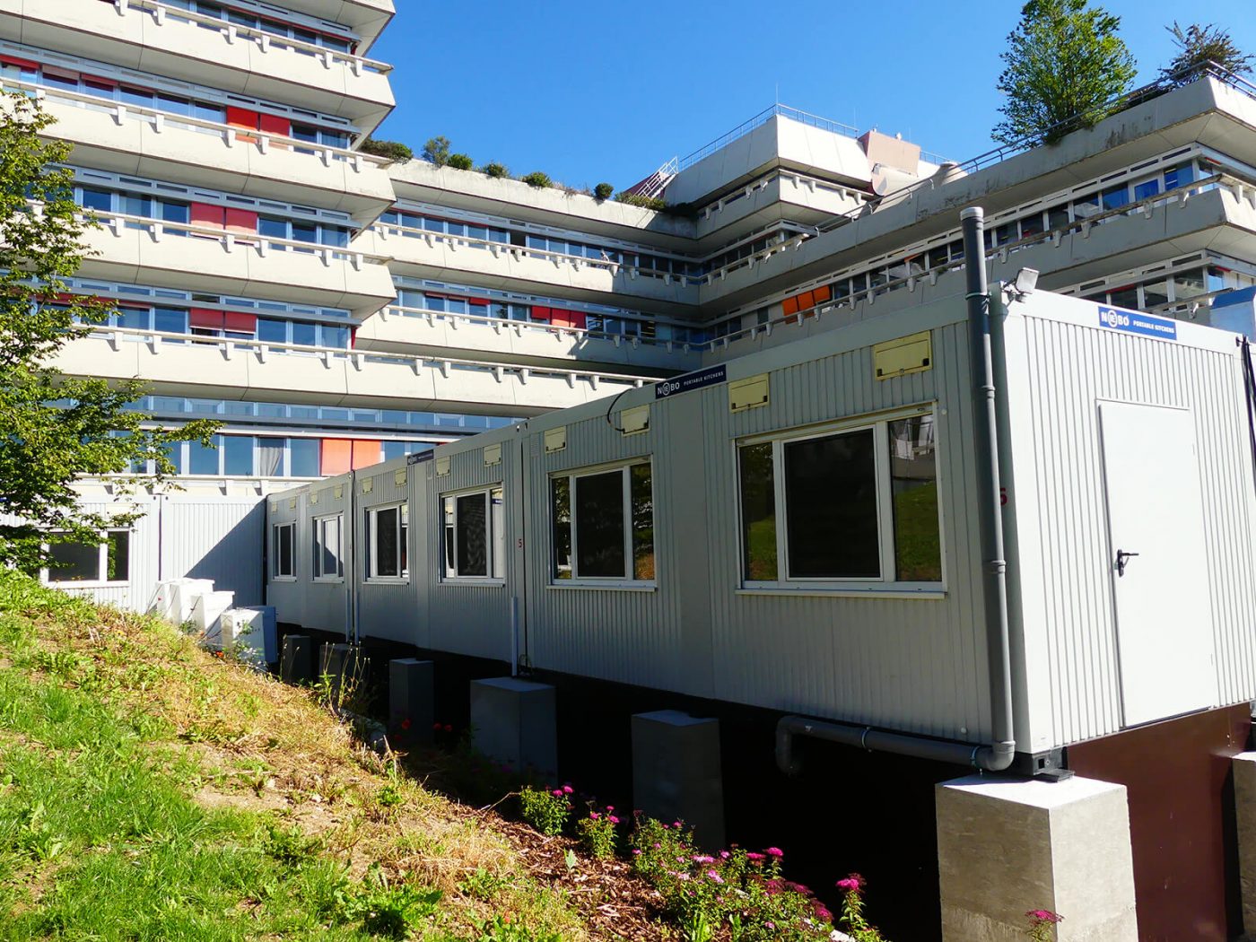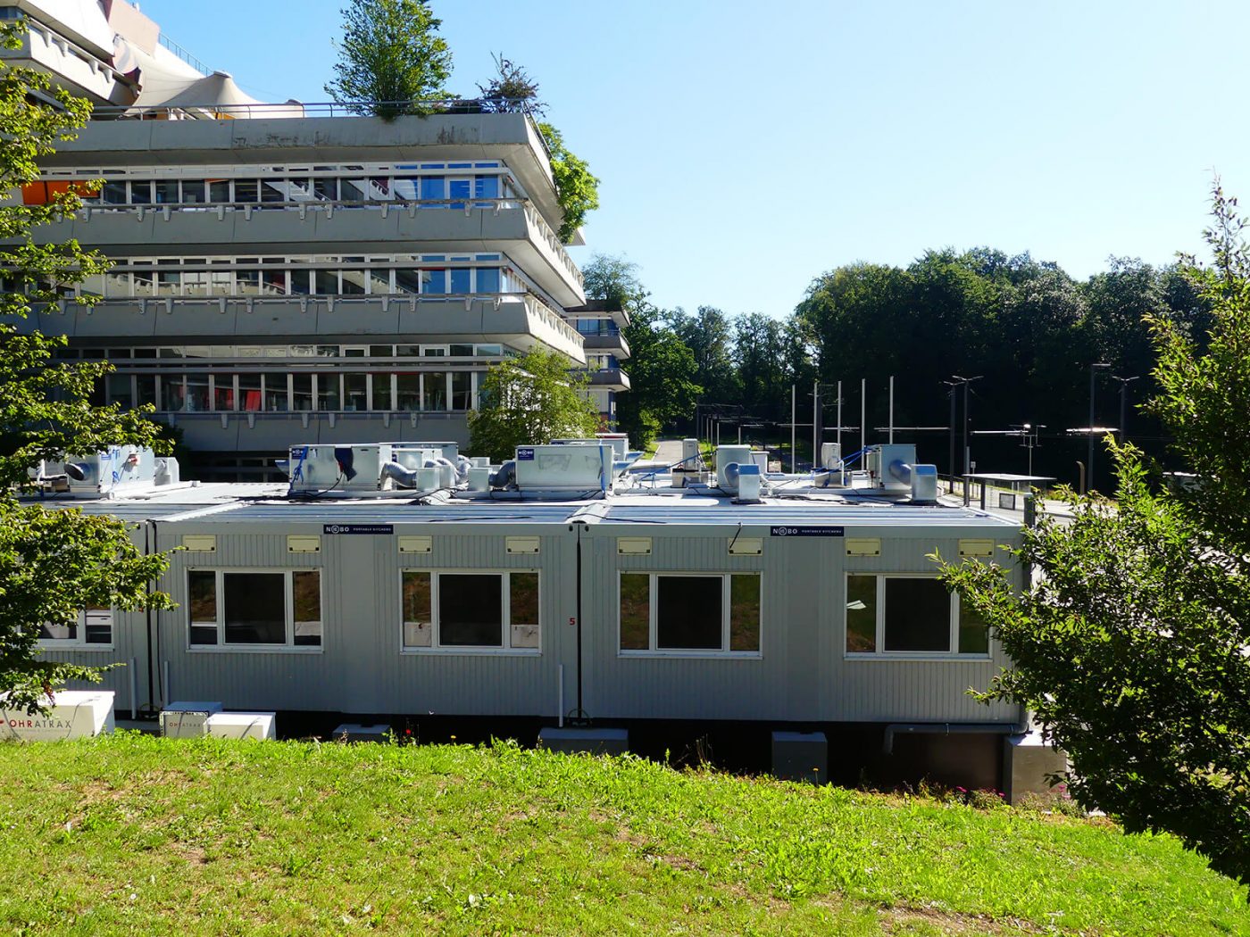 Nach knapp zweijähriger Vorbereitung steht die Interimsmensa in Ulm, um die Gäste während der Bauphase der Zentralmensa weiter gut zu versorgen. Wichtig für die Verantwortlichen auch hier ein sorgsamer Umgang mit den Ressourcen. So ließen sich in der Containerküche Altgeräte der bisherigen Mensa einsetzen, um noch für knapp zwei Jahre gute Dienste zu leisten.