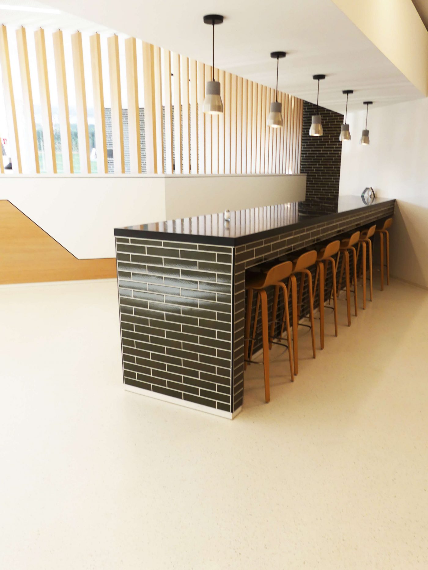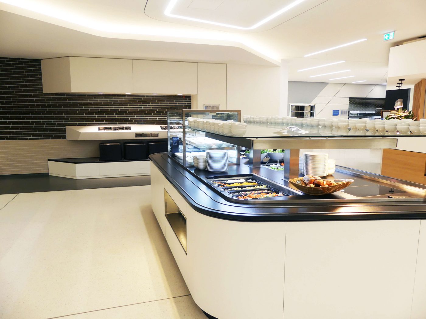 Im Rahmen der energetischen Sanierung des Gesamtgebäudes wurden alle Versorgungsbereiche der Betriebsgastronomie auch zu einer Wohlfühlzone für die Gäste des Mitarbeiterrestaurants gemacht.